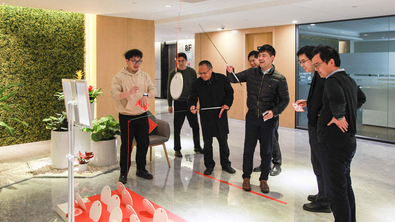滾元宵小游戲,“如何在一盆黃米元宵中滾出那顆大湯圓?”不少員工表示這個項目挑戰性十足,紛紛出謀劃策,隨著那顆大湯圓滾進箱子里,現場響起陣陣歡呼聲。