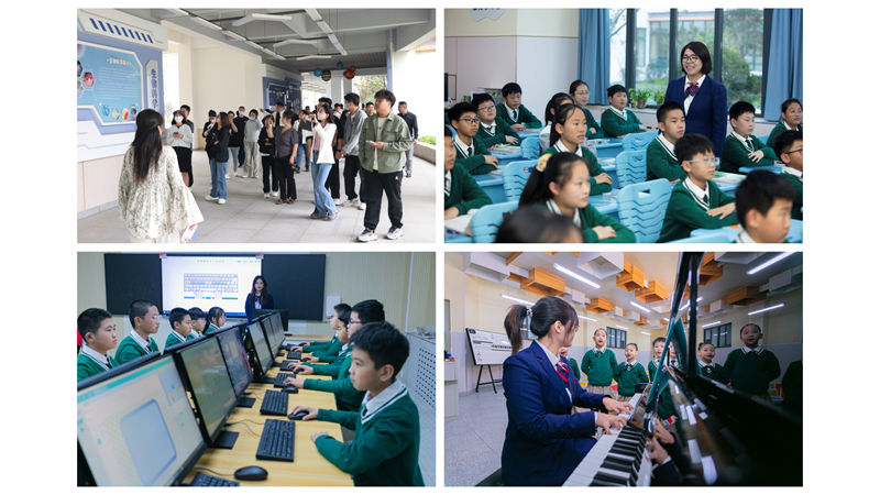 參觀團(tuán)一行首先觀摩了學(xué)生作品展區(qū)。繪畫(huà)、手工藝品、環(huán)保裝置等創(chuàng)意作品琳瑯滿目,充分展現(xiàn)了學(xué)生們的藝術(shù)才華和創(chuàng)新能力。在教學(xué)區(qū),雙語(yǔ)互動(dòng)課堂和智慧教學(xué)場(chǎng)景吸引了參觀者的目光。校方介紹,學(xué)校通過(guò)多元化社團(tuán)活動(dòng)和個(gè)性化課程設(shè)置,全面促進(jìn)學(xué)生綜合素質(zhì)發(fā)展。